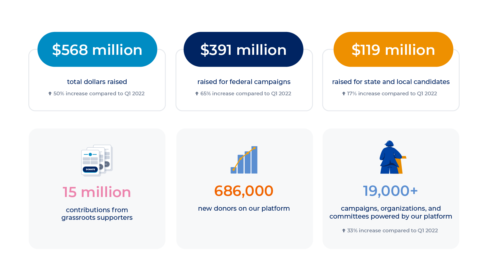 - $119 million raised for state and local candidates, a 17% increase compared to Q1 2022